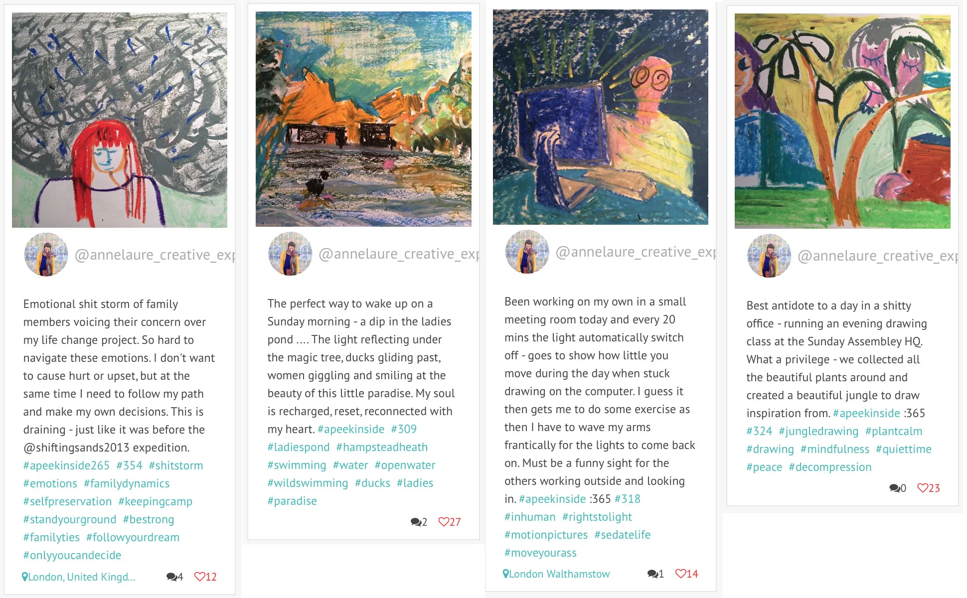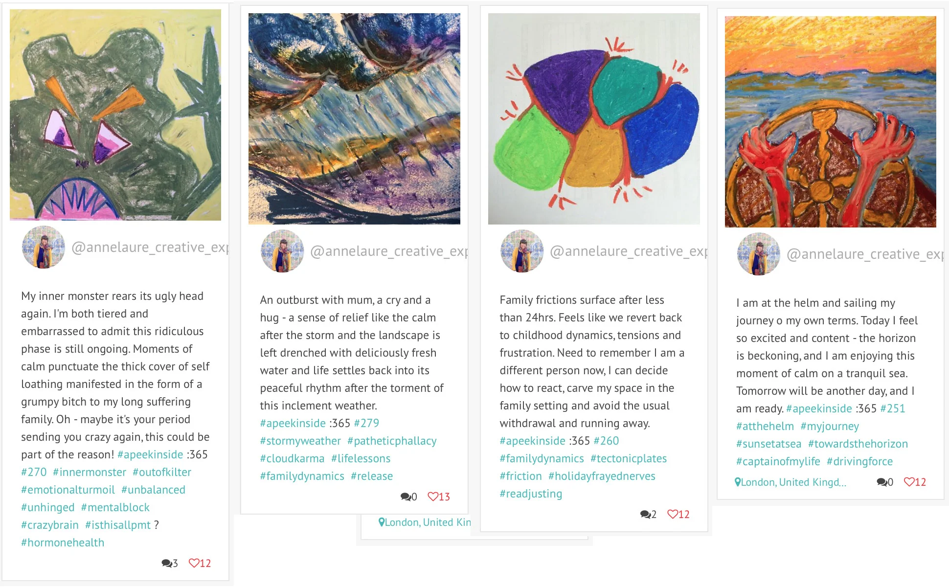 365 days of a visual diary, baring all, how I feel. I hope this helps others realise they are not alone - that its ok to talk about, in fact the more we all share our experiences the better we can protect our mental health.