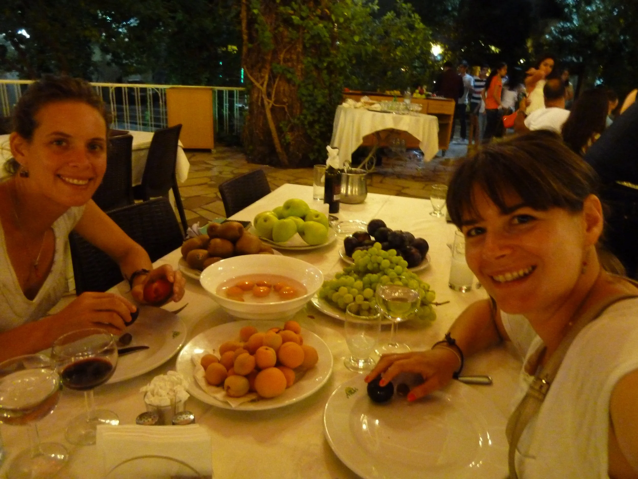 I loved that at restaurants, there's always a plate of fresh basil or salad, just washed, and set out with radishes or other things as a little snack before your meal. And then at the end of the meal, you get a big bowl of fruit - whole fruits that you can wash yourself and eat.