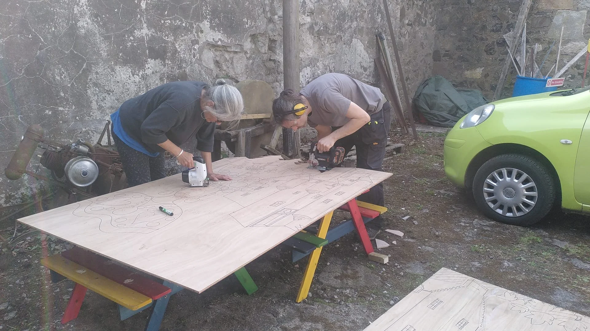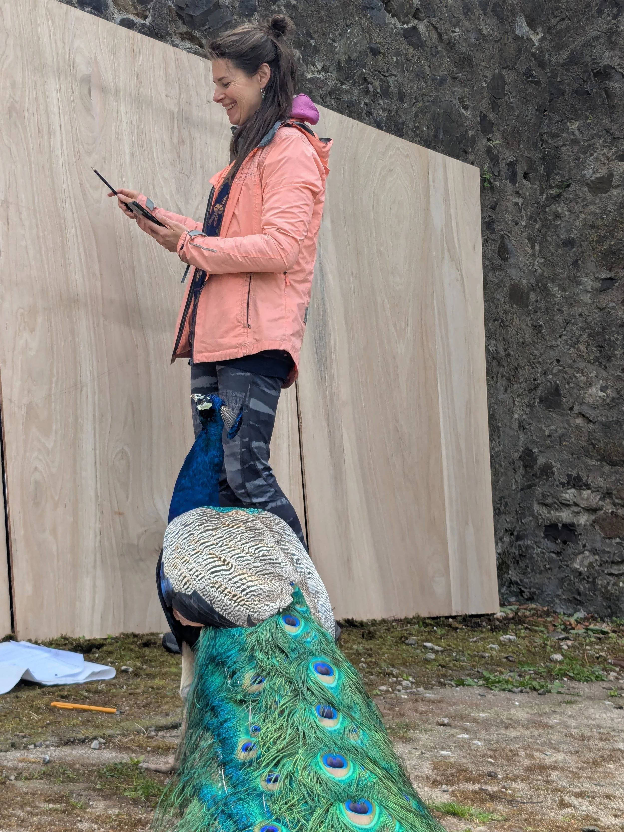 With a dream team of friends - including a peacock! - we built a plywood canvas that was located in a prime position just in front of the festival castle. I designed a composition of a landscape depicting the festival with a sharpie.