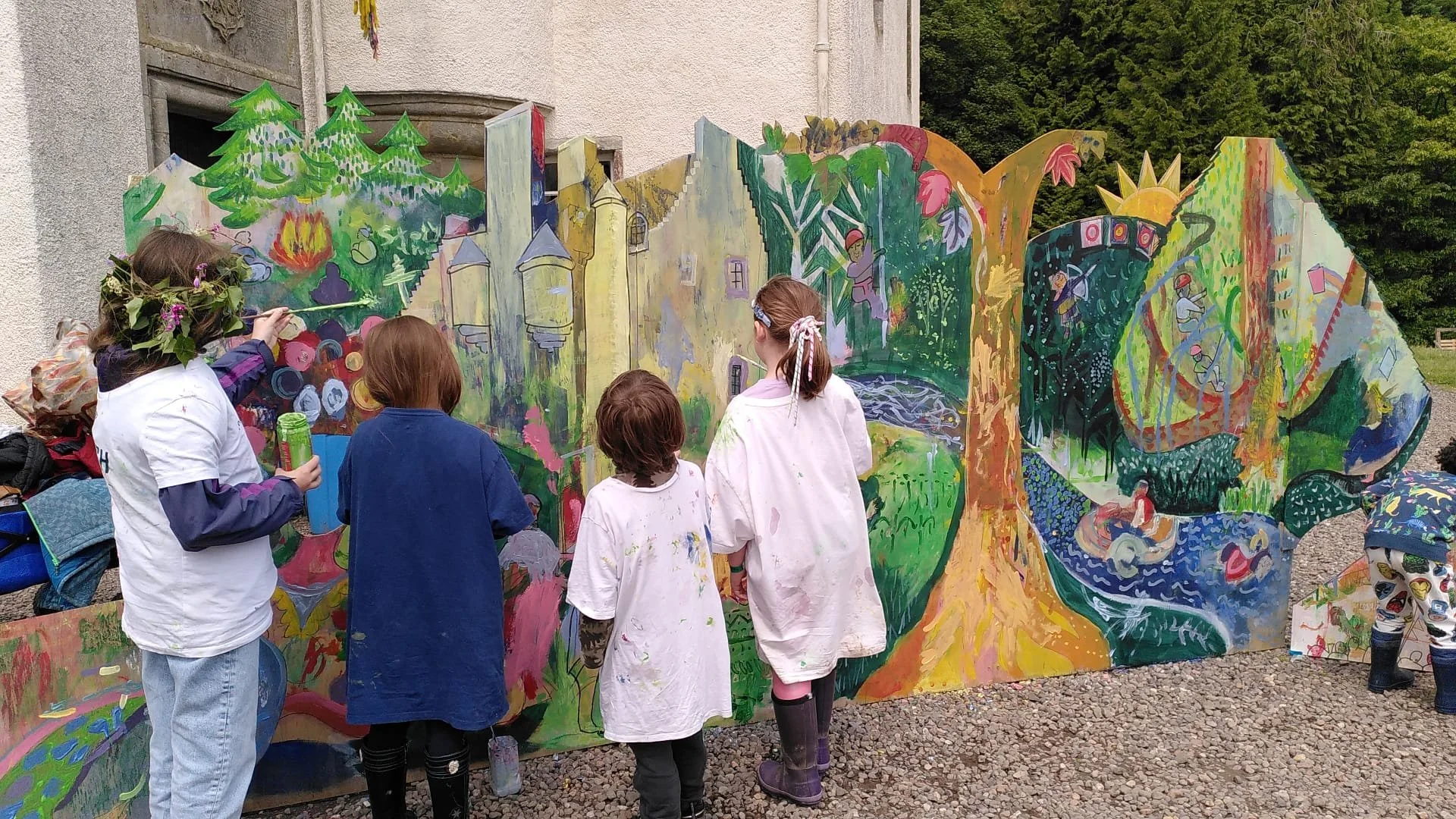 When the festival opened on the Friday night we had barely finished building and securing the structure before little friends came to get stuck in with the paints to decorate it. They wasted no time in unleashing their creative expression!